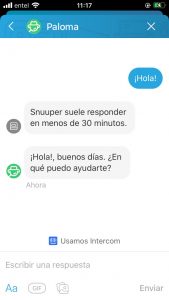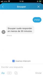 El Intercom es la primera opción y la más inmediata para atender todo tipo de mensajes; sea porque tuviste algún inconveniente en el punto visitado, alguna duda con la app o cualquier otro tema relacionado a Snuuper.