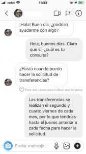 En la mensajería; Dani, Andrea y Paloma en Chile y Karen y Natalia en México; estarán atentas a tus requerimientos para darte la solución a tu duda. Recuerda siempre lo importante que es mantener el respeto y la buenas palabras en la interacción; para que así la comunicación sea educada y fluida.