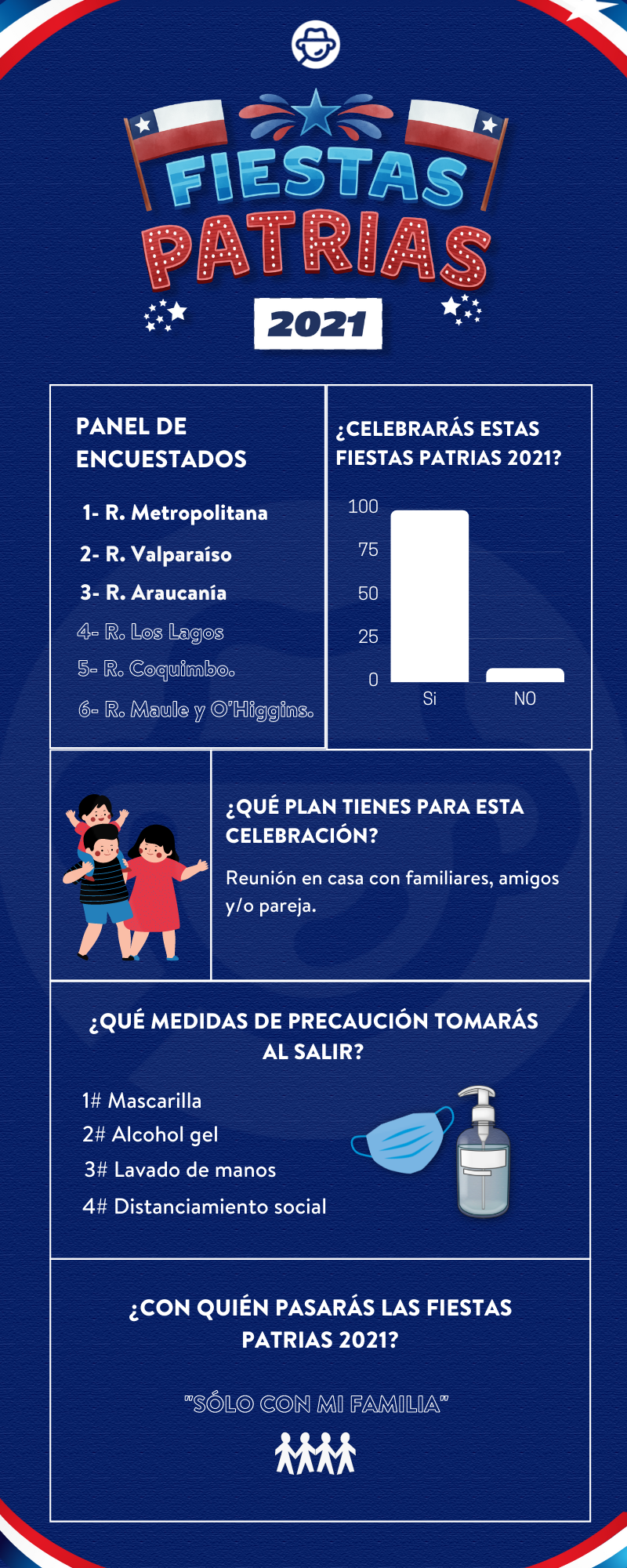 Como conclusión podemos afirmar que los chilenos en este tipo de celebraciones prefieren realizar actividades familiares y/o con su círculo más cercano, siempre y cuando mantengan las medidas de higiene mencionadas anteriormente para evitar la propagación del Covid-19.